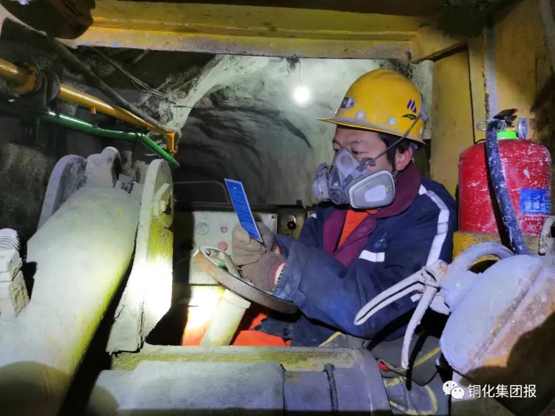 下圖:鏟運機司機蔣繼能在作業(yè)前閱讀風(fēng)險識別卡。