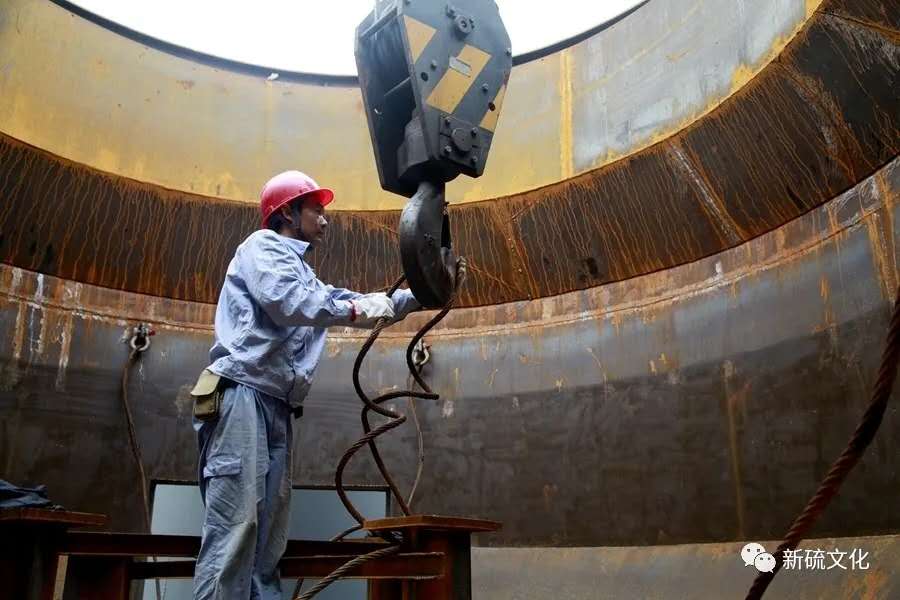 正午時(shí)分,礦業(yè)公司“東西翼礦石選礦技改工程”現(xiàn)場(chǎng),重達(dá)12噸的浮選機(jī)槽體在吊車(chē)牽引下緩緩落入5米底座,工人們調(diào)整基座角度,開(kāi)始焊接、安裝中間箱。