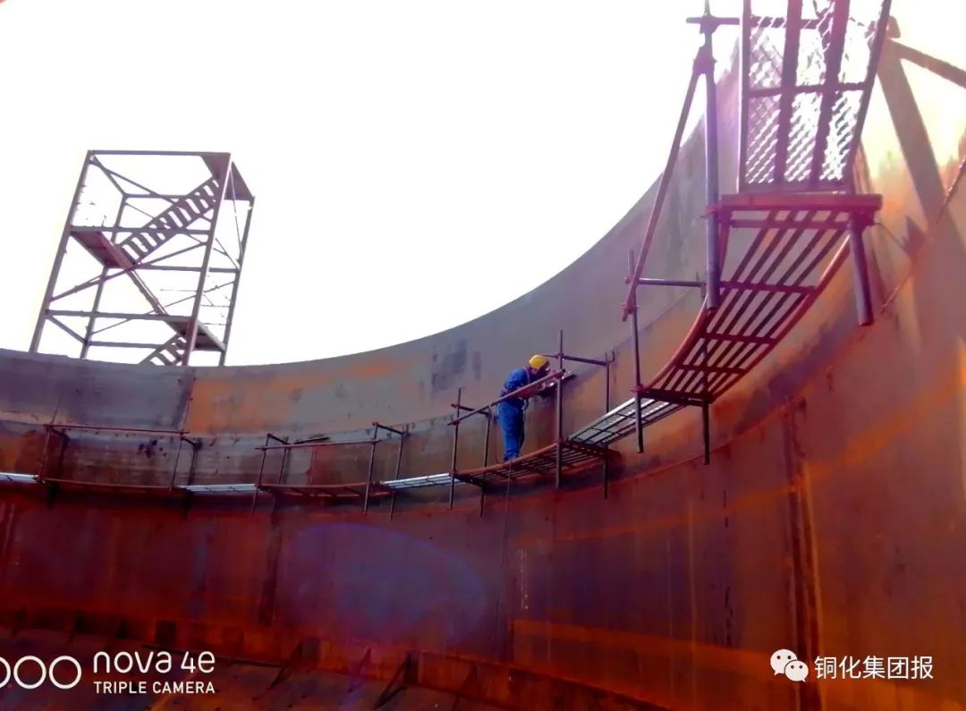 為促進(jìn)礦山綠色發(fā)展,新橋礦業(yè)公司投資近2200萬元,對全尾砂充填系統(tǒng)進(jìn)行技改。該工程于2月動工,預(yù)計7月底收官運(yùn)行。屆時,選礦廠、選鐵廠生產(chǎn)尾砂及污水處理站淤泥經(jīng)混合處理可全部用于井下充填,實(shí)現(xiàn)礦山生產(chǎn)固廢零排放。圖為5月21日,工人正在施工現(xiàn)場焊接直徑18米的深錐濃密池?!√丶s記者/ / 朱常林/ / 攝